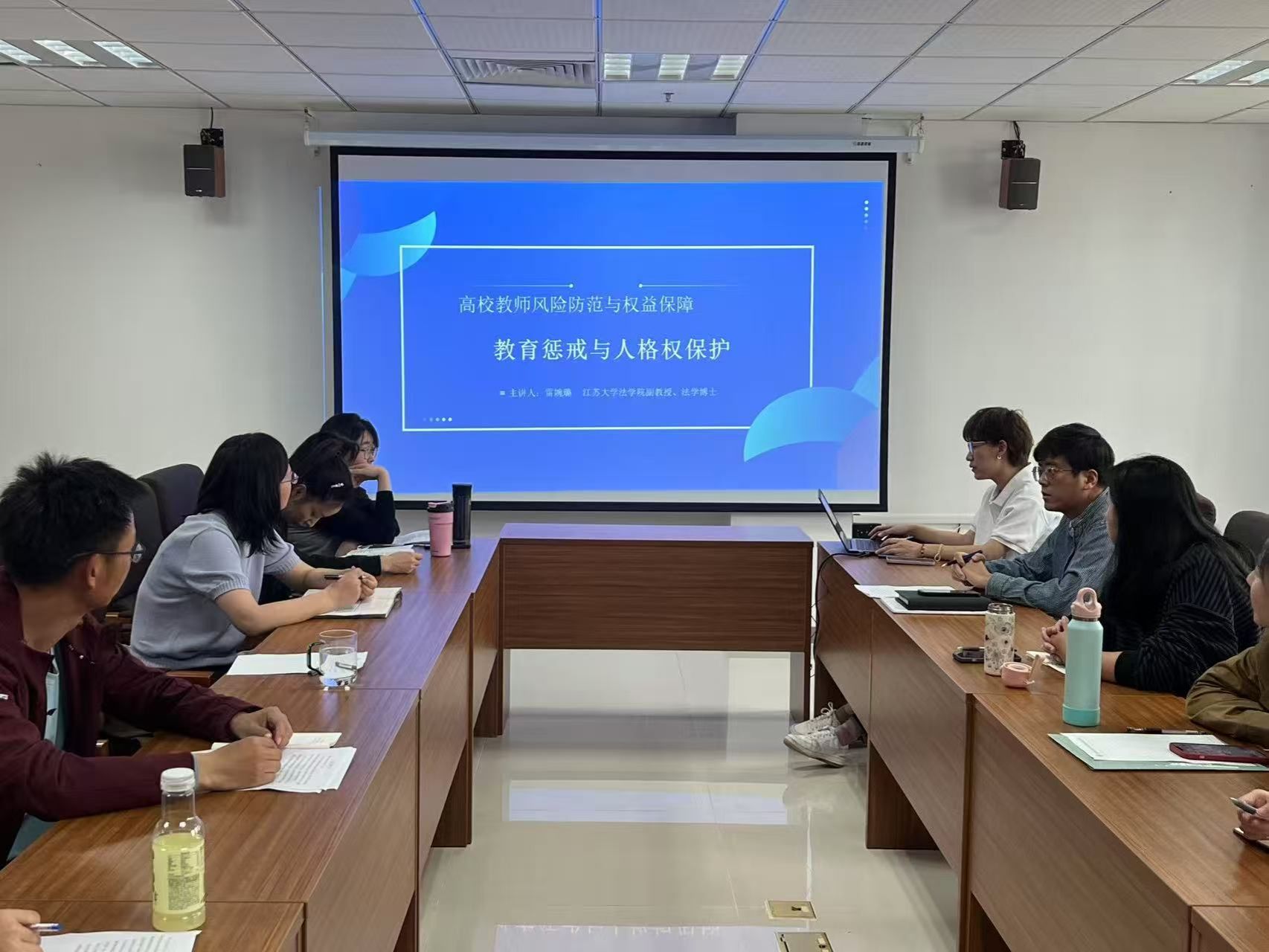 为深入贯彻落实依法治校理念,提升教职工法律素养与风险防范意识,近日,基础课程教学部特邀江苏大学法学院副教授雷婉璐,为全体教职工开展了一场主题为“高校教师风险防范与权益保障”的法治宣传教育宣讲专题讲座。活动为教职工筑牢法律防线,助力构建和谐校园环境。