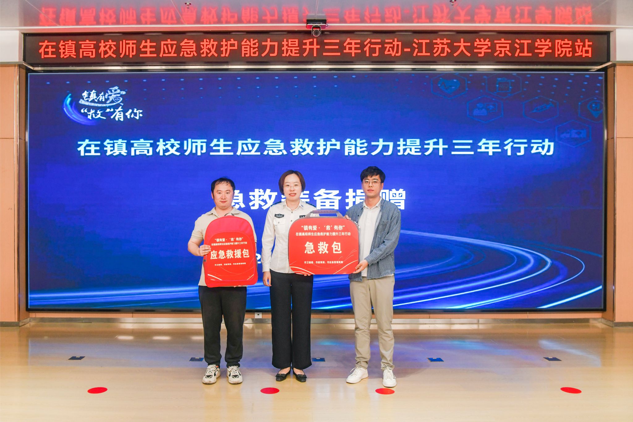 活动现场,镇江市急救中心向京江学院捐赠了AED(自动体外除颤器)、急救包、模拟教具等设备,为校园应急救护工作提供硬件支撑。蒋韵主任表示,校地双方将以此次合作为起点,推动急救资源深度融入校园,助力平安校园建设。
