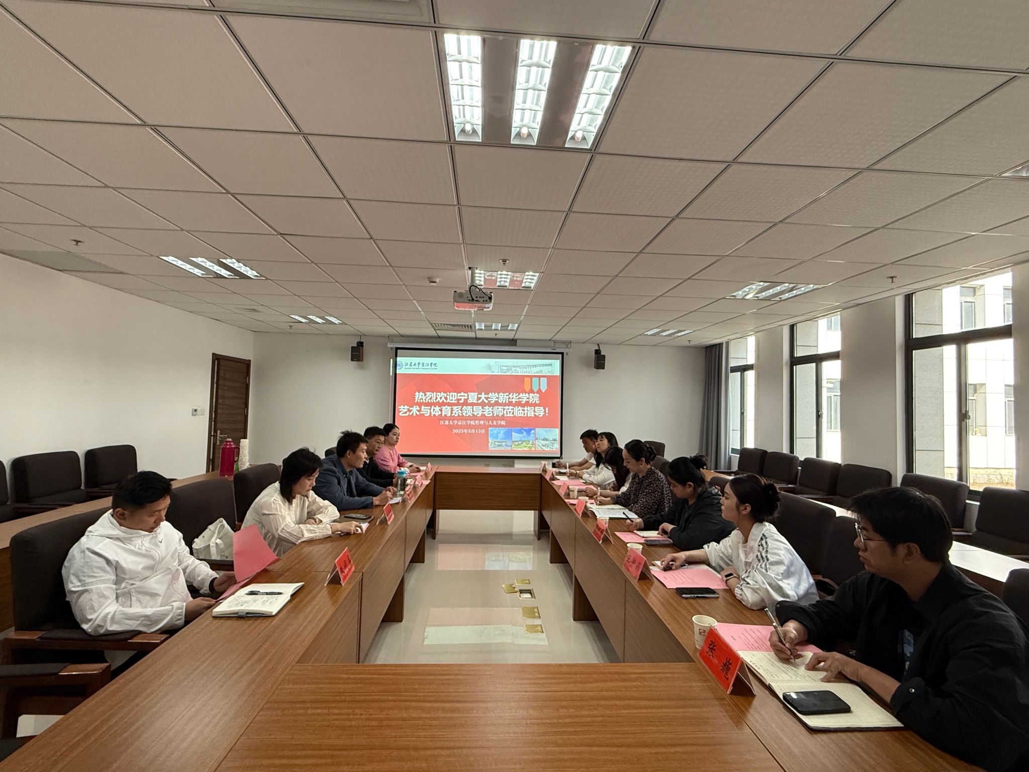 5月13日,京江学院管理与人文学院和宁夏大学新华学院艺术与体育系联合开展党建交流活动。宁夏大学新华学院艺术与体育系副主任郑雪一行7人参加了此次交流活动,活动由管理与人文学院党总支副书记黄现成主持。