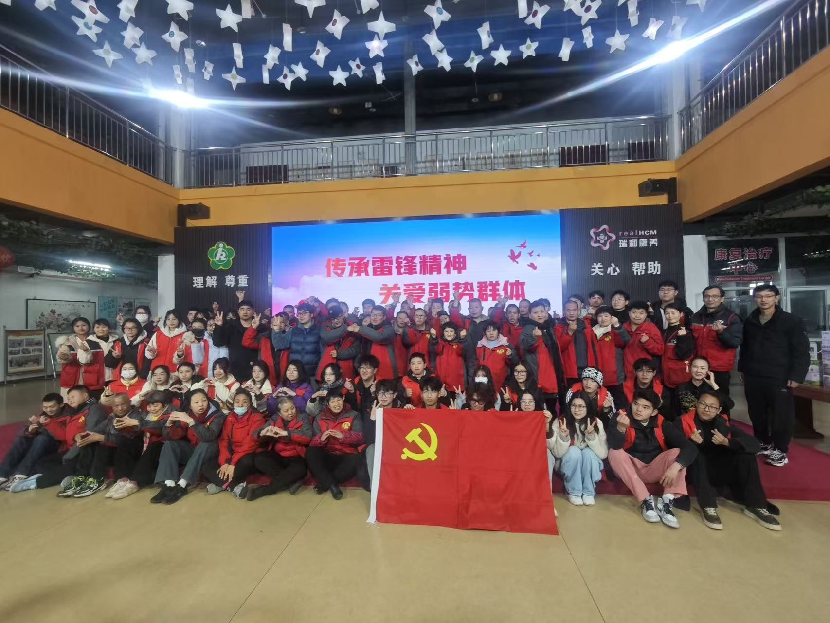 在第62个学雷锋纪念日到来之际,3月5日,江苏大学京江学院、镇江市丹徒区高级中学、镇江市残疾人托养中心、镇江市家家乐助残助老服务中心共同举办“传承雷锋精神 共筑温暖港湾”主题志愿服务活动。江苏大学京江学院电气信息工程学院师生党员、红石榴班民族学生代表参加了活动,师生一行走进镇江市残疾人托养中心,看望慰问在此托养的智力残疾学员。学院师生向学员们送出了爱心物资,陪伴学员们唱歌、跳舞、做手工,共同度过了一个欢乐而难忘的下午。