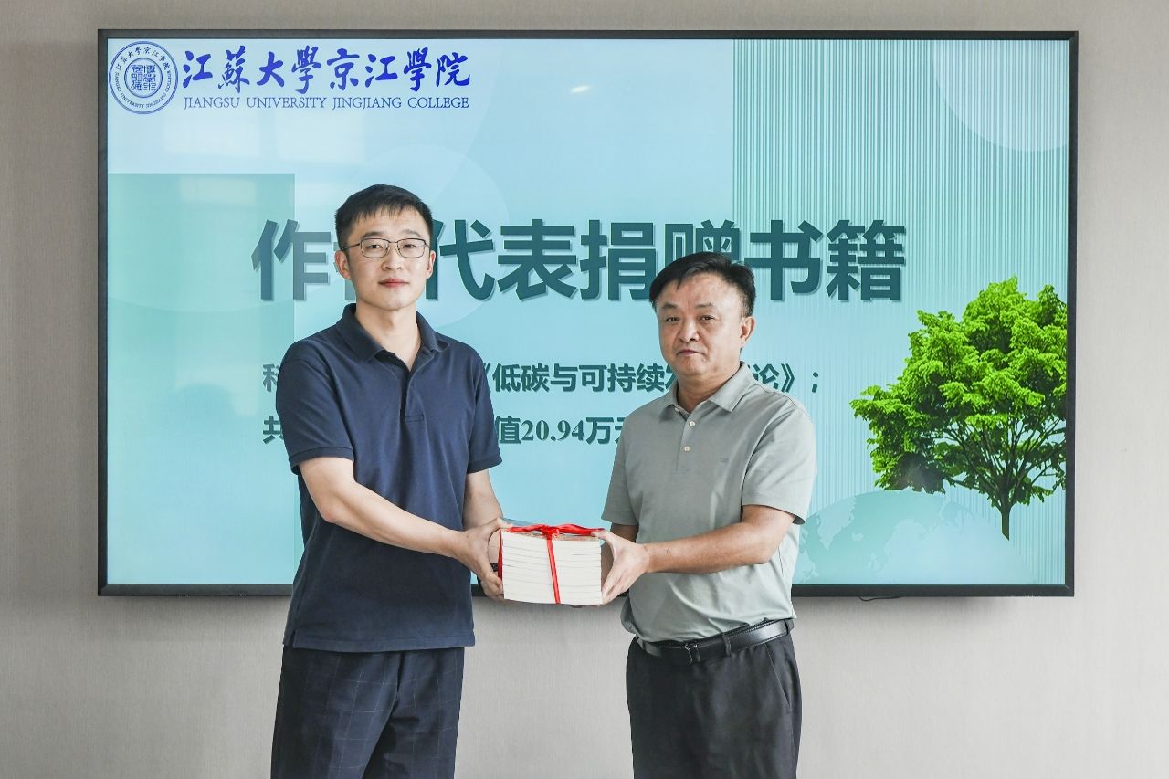九月校园秋意浓,绿色理念谱新篇。为深入践行习近平生态文明思想,积极响应国家“双碳”战略,贯彻落实教育部关于将可持续发展理念融入高等教育体系、培养绿色创新人才的要求,服务国家2030年前碳达峰总体部署,9月11日下午,江苏大学京江学院在学术交流中心第一报告厅举办低碳可持续发展研讨暨《低碳与可持续发展概论》教材捐赠仪式。